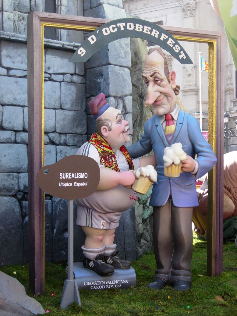 Dalí en la primera foto y más estilos. El Surrealismo imposible, el Rey con corbata republicana tomándose unas cañas con Carod vestido del Real Madrid y con bufanda de la selección Española.