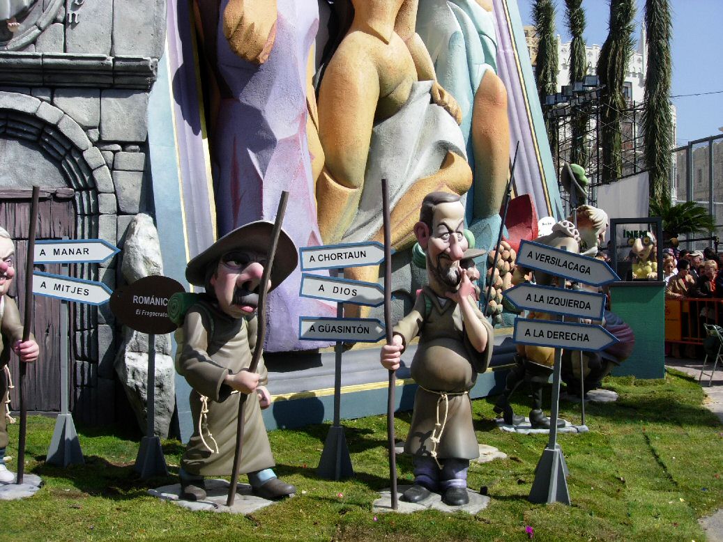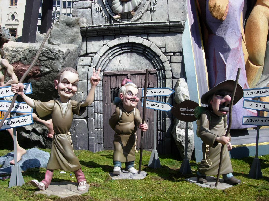 Estilo Románico. El Camino de Santiago con varios políticos: Zapatero, Margall, Aznar y Rajoy. Fraga en la puerta de la iglesia.