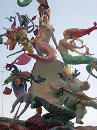 El centro de la falla lo corona Neptuno, el nuevo alcalde de la ciudad, a quien las sirenas harían de séquito oficial.