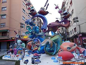 Falla Salvatierra-Amorós 4th prize. Title: "1916-More than a market" Artist: Jose Gallego Falla Lo Rat Penat 6th prize. Title: "Ale hop,jump through hoops" Artist: Pedro Santaeulalia Falla G Lluch-M Merenciano 12th prize. Title: "Oceanide" Artist: Paco Giner