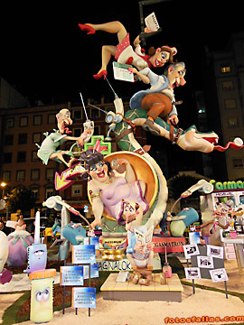 Falla Pizarro-Amorós 9th prize. Title: "The world upside down" Artist:Paco Mesado Falla Zapadores 10th prize. Title: "Who stop this music" Artist:Jose R Devís Falla Bolsería-Tros Alt 15th prize. Title: "One of Berlanga" Artist:Carlos Mondriá