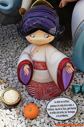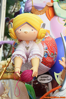 "En la falla vemos el proceso vital de los gusanos de seda, deesde que son gusano, pasando por crisálida hasta que sale del capullo la mariposa. Como se tinta la seday más curiosidades de su uso actual."