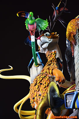 A weathervane with a white flag indicates that the commitment is still valid today. It is a tragicomic landscape, a series of animals appear that have not survived the contamination. Other mammals and reptiles look to the future with hope, although forced to adopt artificial behaviors.