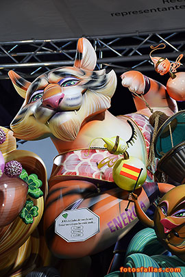 The central body of the falla represents the six most precious values: luck, energy, protection, faith, magic and superstition. The magical sphere that surrounds them all is endowed with extraordinary powers. They represent the 'jewel' concept at its finest: that something that makes us feel unique and confident in ourselves."
